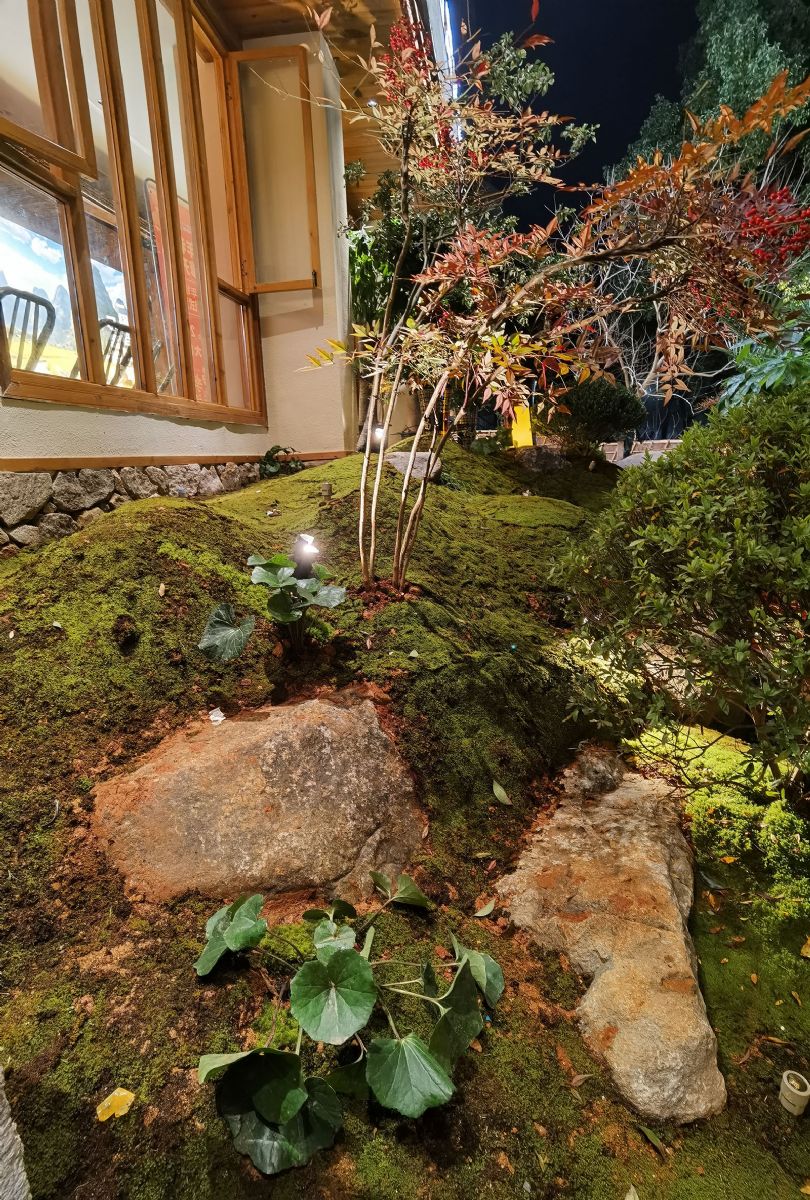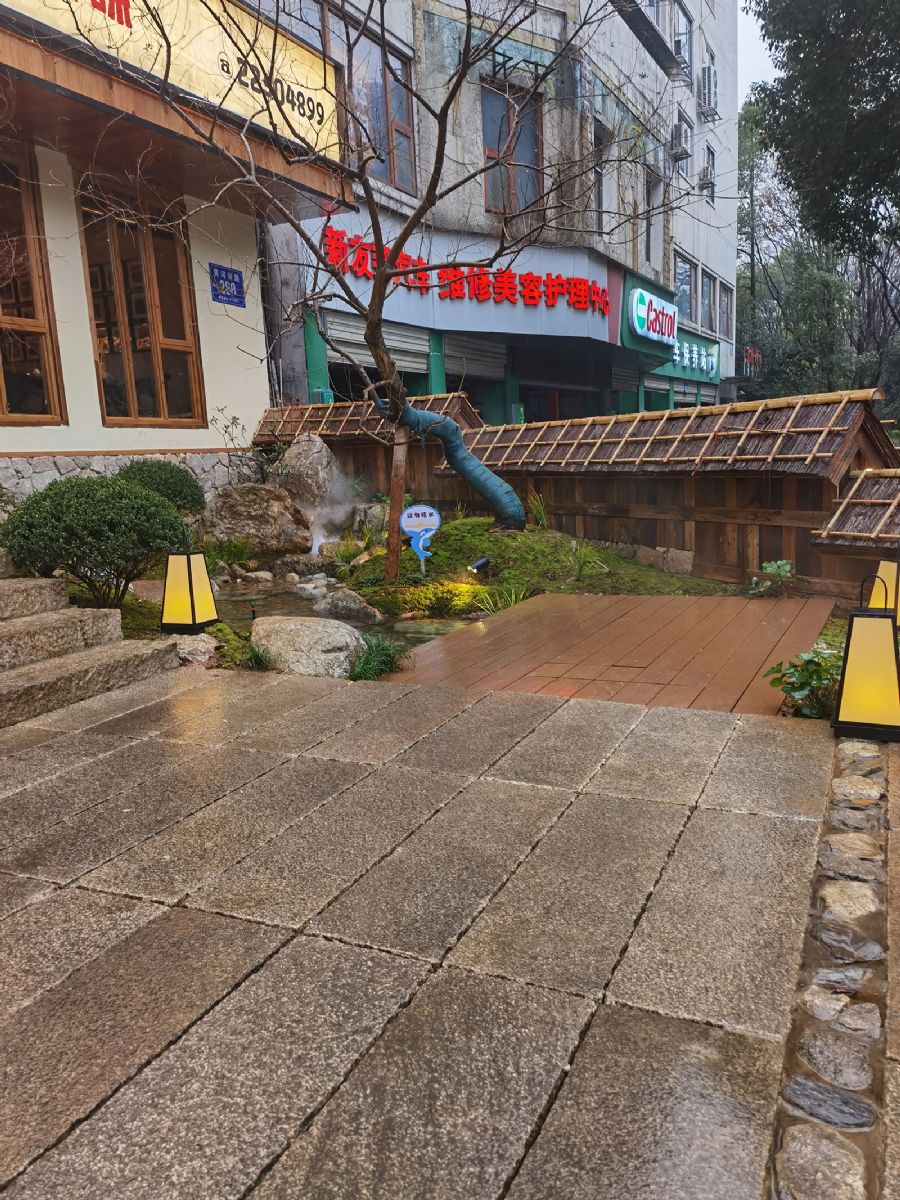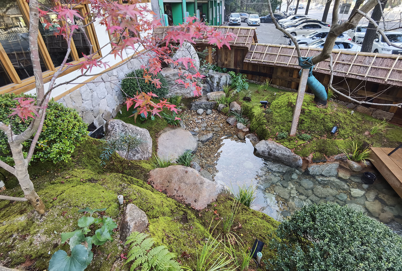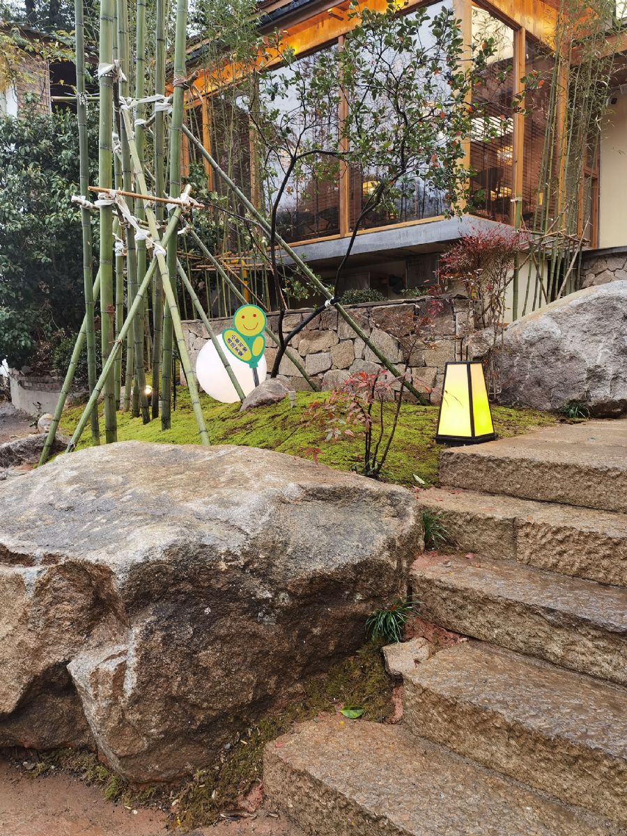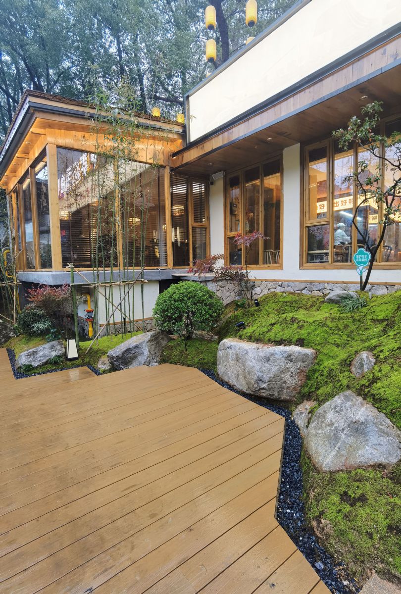 藏着东方美学的清寂与雅致。覆着青苔的山石错落堆叠,清浅的溪流在石间潺潺流淌,苔藓如绿毯铺满角落,几株低矮绿植点缀其间,与木质建筑、枯枝相映,将自然野趣与人工巧思完美融合。在这里,时光仿佛慢了下来,每一缕水声、每一片苔痕,都在诉说着庭院独有的宁静与禅意,是喧嚣都市里的一方治愈秘境。